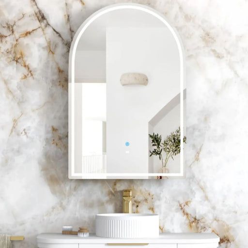 | /The Remer Blanca 500mm Arch Shaving Cabinet is a stylish and functional bathroom accessory. It features a frontlit LED mirror that provides ample ...